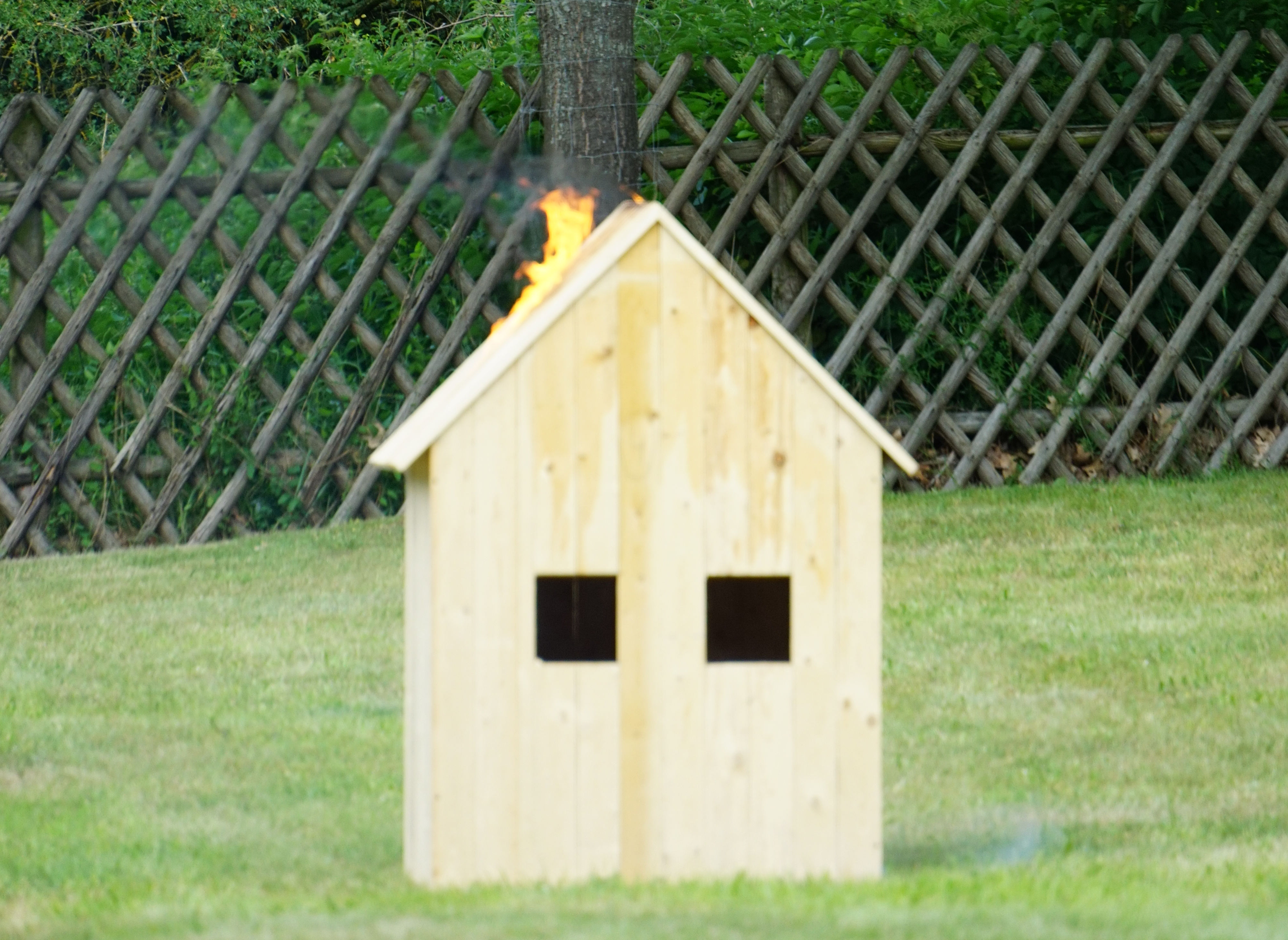 Ein eigens gebautes Holzhäuschen wurde – symbolisch durch die Kanone „entzündet“ – von den Jugendlichen gelöscht. Anschließend übernahm die historische Löschgruppe mit ihrer Handdruckspritze von 1904 die Restlöscharbeiten und zeigte eindrucksvoll, dass die Technik auch nach 120 Jahren noch funktioniert.