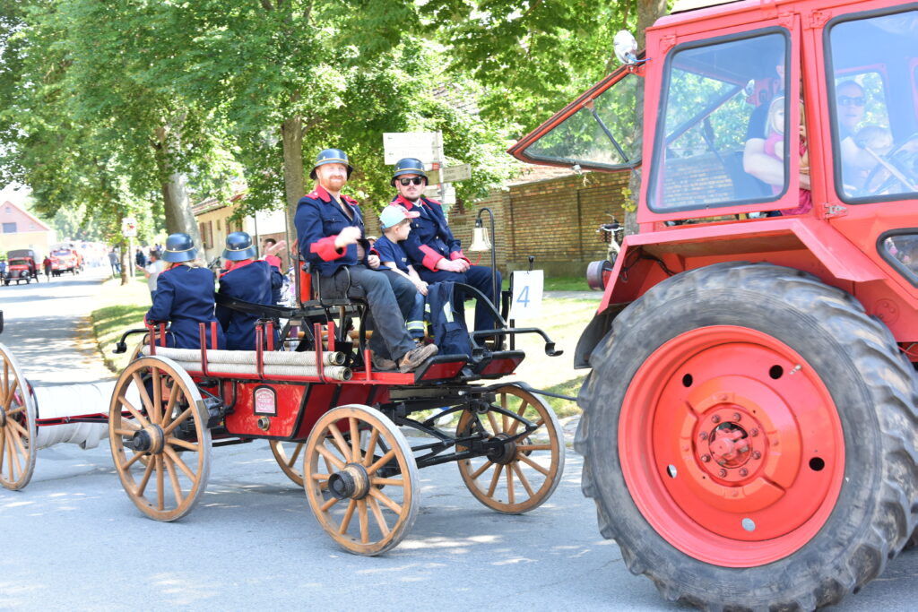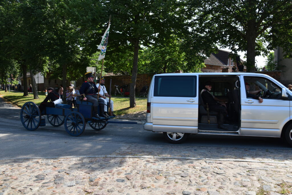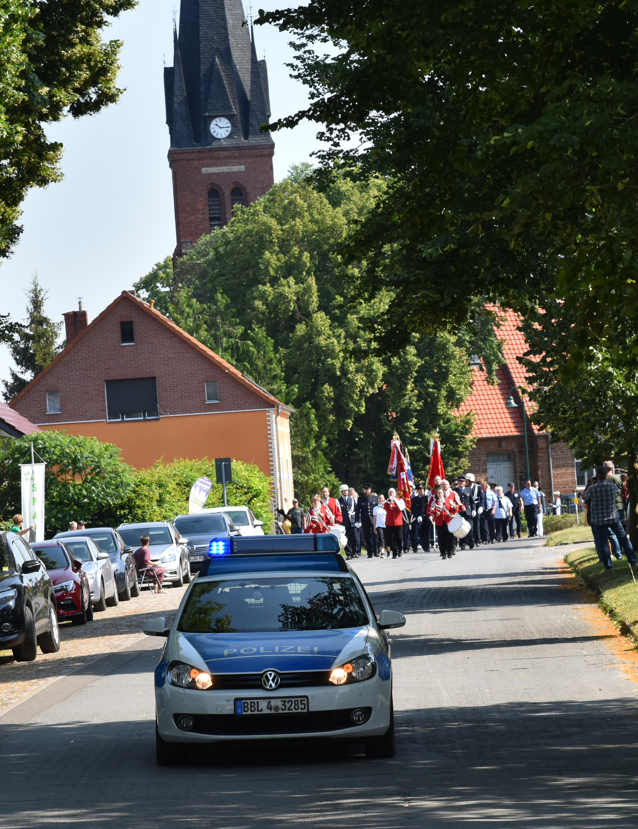 Der Festzug führte durch die Straßen des Ortes und endete am Festplatz am Dornbuschsee, wo bereits kühle Getränke, Eis, Kaffee, Kuchen und ein warmes Mittagessen warteten.