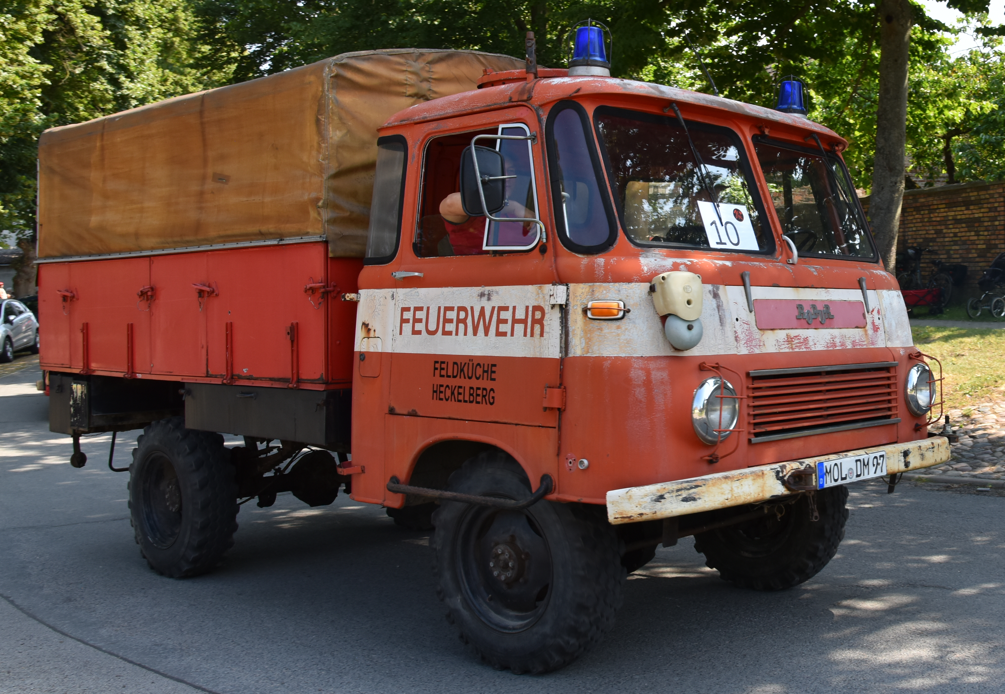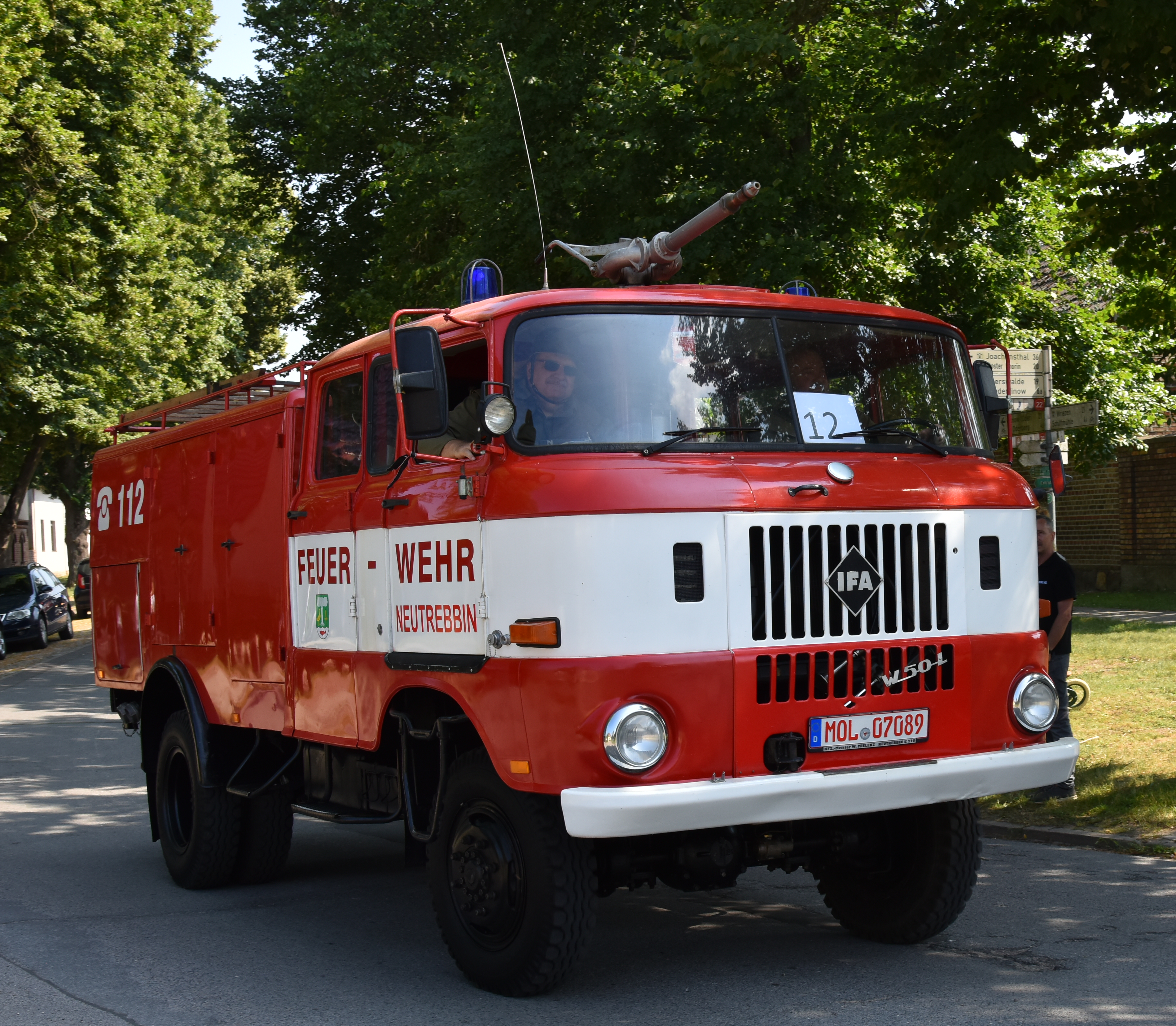 Die Besucher konnten Feuerlöschtechnik aus drei Jahrhunderten bestaunen – insgesamt 21 verschiedene Löschfahrzeuge und Geräte, vom historischen Handkarren von 1890 der Feuerwehr Neutrebbin bis zum modernen HLF 10 der Feuerwehr Altranft.