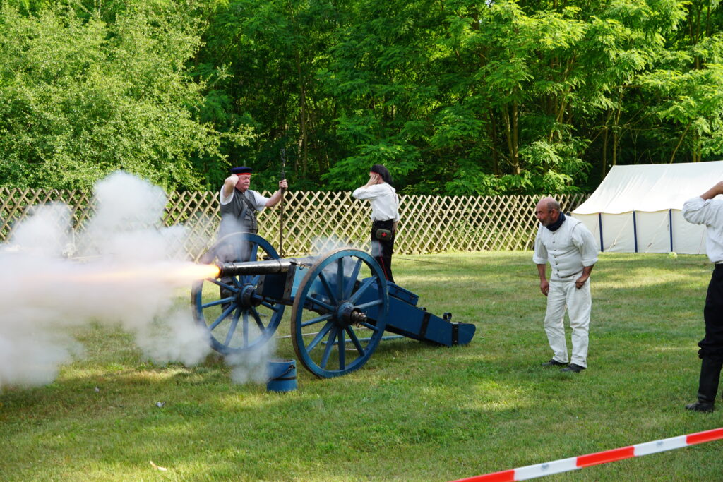 Die Artillerie-Brigade 1813 demonstrierte mit lauten Kanonenschüssen ihr Können, bevor die Jugendfeuerwehr Bralitz eine eindrucksvolle Löscheinsatzübung zeigte.