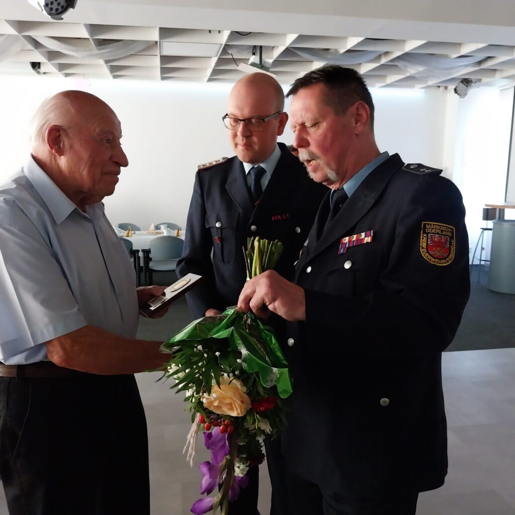 Kamerad Hannemann ist seit 74 Jahren Mitglied der Freiwilligen Feuerwehr Bralitz und prägte unsere Wehr entscheidend. Von 1968 bis 1995 war er Ortswehrführer in Bralitz, gründete 1973 die AG „Junge Brandschutzhelfer“ – den Vorläufer der heutigen Jugendfeuerwehr – und bekleidete zahlreiche weitere verantwortungsvolle Positionen. Auch als Chronist und Förderer hat er die Geschichte und Entwicklung unserer Wehr nachhaltig begleitet.