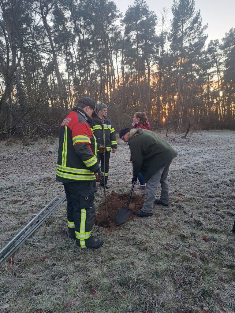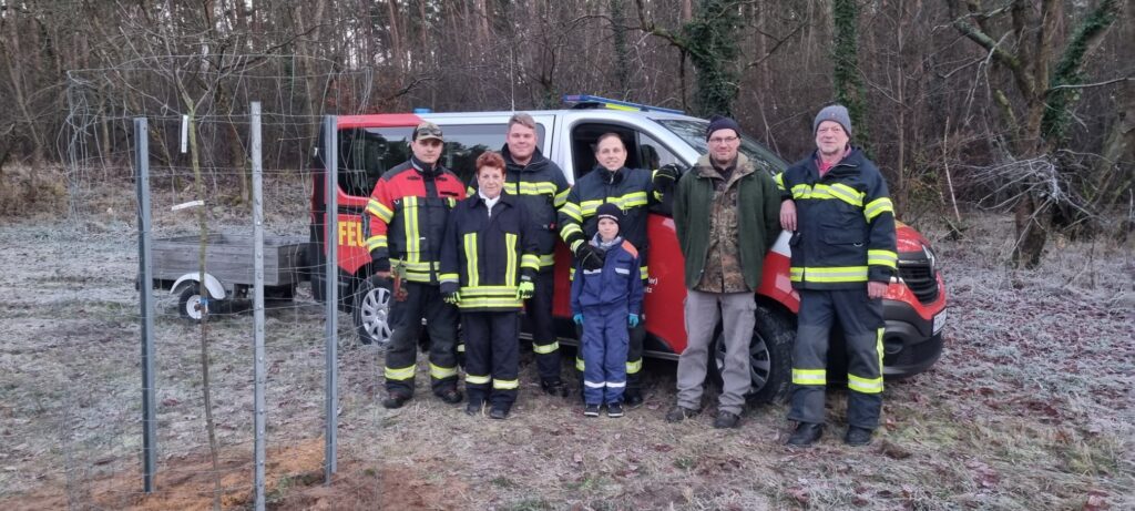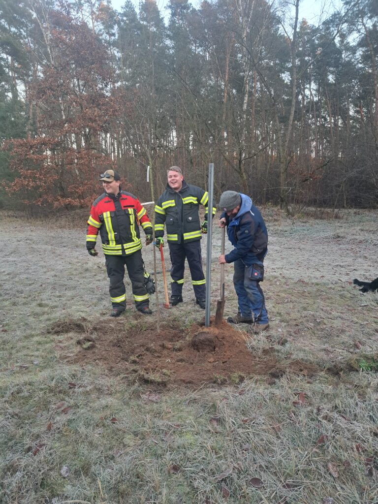 Beteiligt waren sieben Kameradinnen und Kameraden der Feuerwehr Bralitz, ein Mitglied der Jugendfeuerwehr sowie vier engagierte Anwohnerinnen und Anwohner aus dem Ort. Gemeinsam wurden die Bäume fachgerecht gepflanzt, gesichert und bewässert.
