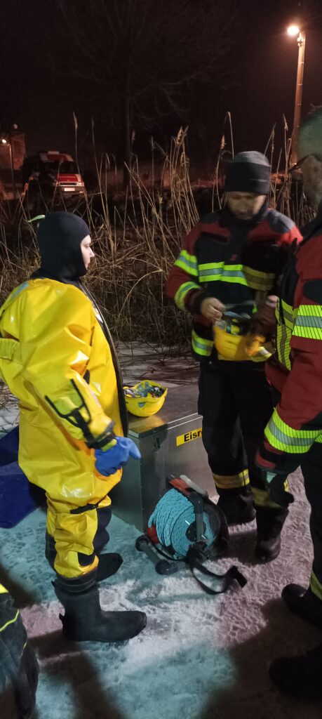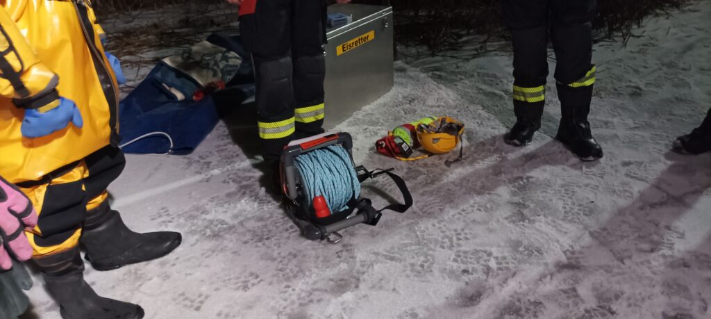 Die Übung vermittelte wertvolle Einblicke in die besonderen Gefahren und Herausforderungen der Eisrettung und zeigte, wie wichtig abgestimmtes Vorgehen und spezielle Ausrüstung in solchen Einsatzlagen sind.