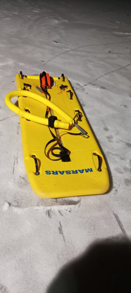 Die Kameradinnen und Kameraden der Ortswehr Parstein stellten uns zunächst ihre spezielle Ausrüstung vor und erklärten die Vorgehensweisen bei Einsätzen auf Eisflächen. Anschließend verlegten wir die Übung auf den zugefrorenen Dornbuschsee. Der Übungsbereich wurde ausgeleuchtet, bevor mehrere Rettungsszenarien praktisch durchgeführt wurden.
