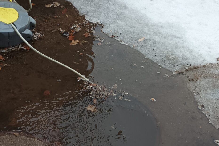 Nach dem Eintreffen der TAVOB konnte schließlich das Wasser abgestellt werden. Im Anschluss begannen wir damit, den überfluteten Schacht auszupumpen. Nachdem die Wasserzufuhr vor der Schadstelle abgesperrt war, konnten die Unterflurhydranten wieder geöffnet werden, um eine weitere Beeinträchtigung der Anwohner in den umliegenden Häusern zu vermeiden.
