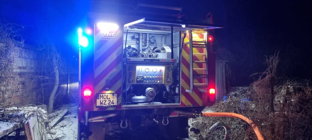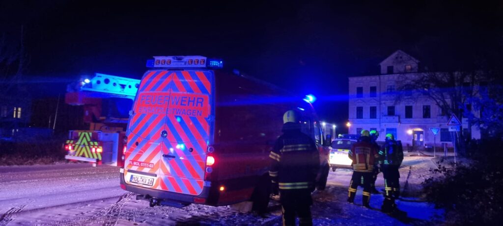 In der Nacht zum 17.02.2026 wurden wir zu einem Gebäudegroßbrand nach Bad Freienwalde alarmiert. In einem leerstehenden Gebäude war kurz nach Mitternacht ein Feuer ausgebrochen. Die Flammen griffen im weiteren Verlauf auf ein benachbartes Mehrfamilienhaus über.