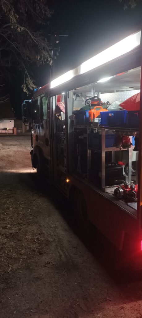 Ein weiterer Bestandteil der Übung war das Ausleuchten der Einsatzstelle mithilfe unseres Stromgenerators und des Lichtmasts. Gerade bei Einsätzen in den Abend- oder Nachtstunden ist eine sichere und ausreichende Beleuchtung entscheidend für ein unfallfreies Arbeiten.