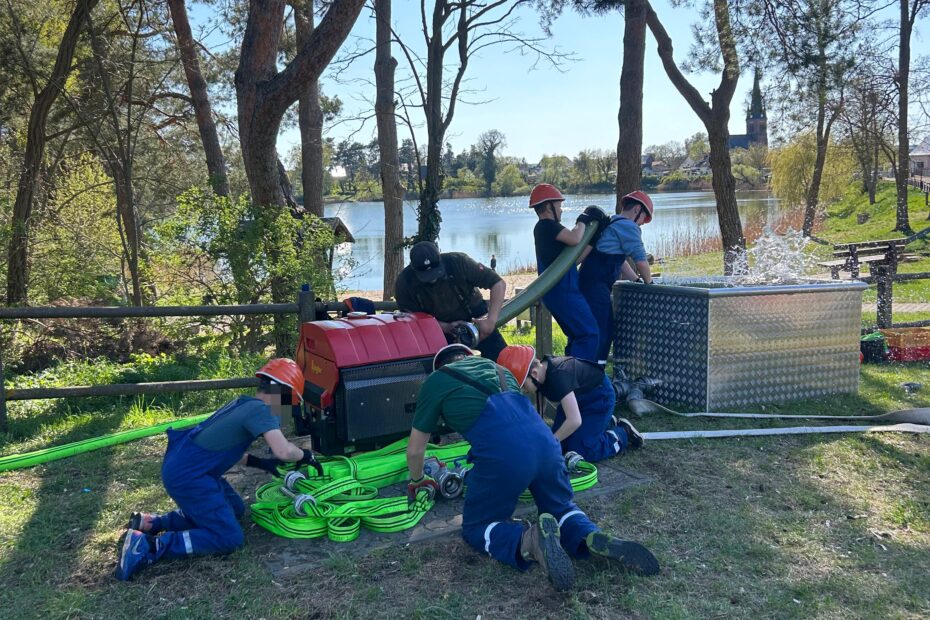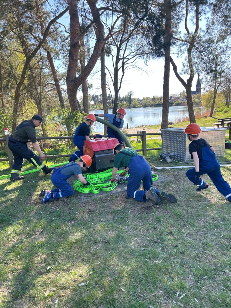 Natürlich trainiert auch unsere Jugendfeuerwehr bereits fleißig für den Wettkampf. Auf den Bildern ist unsere Ü10-Mannschaft zu sehen, die aktuell den Löschangriff „nass“ am Dornbuschsee übt. Mit viel Engagement und Teamgeist werden die Abläufe immer wieder trainiert, um im Wettkampf bestmöglich vorbereitet zu sein.
